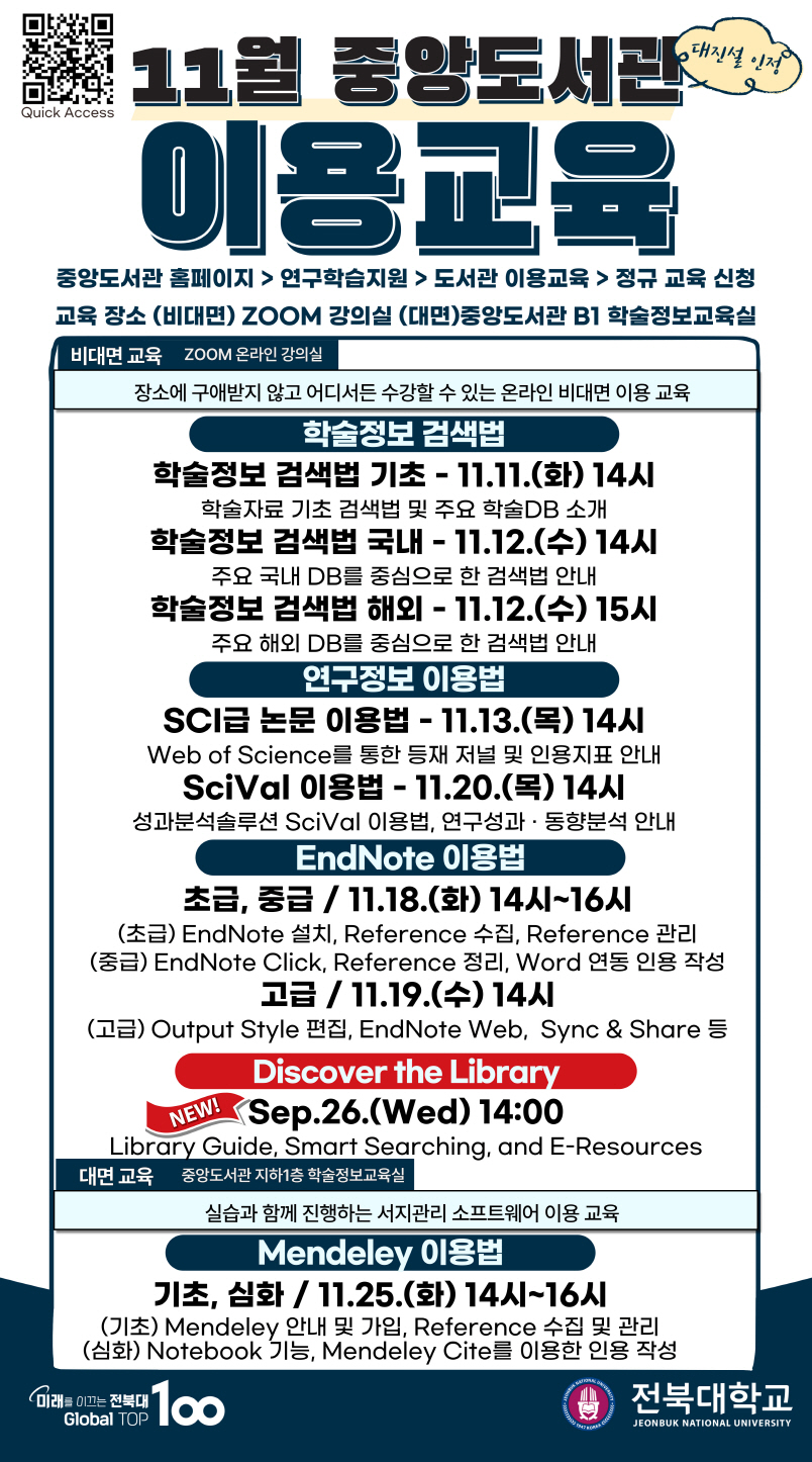 2025년도 11월 중앙도서관 학술정보 이용교육 안내