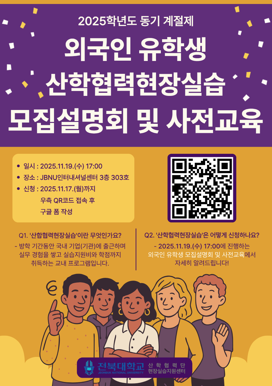 ○ 내 용 : 2025학년도 동기 계절제 유학생 산학협력현장실습 주요사항 안내 및 신청절차 등 설명
