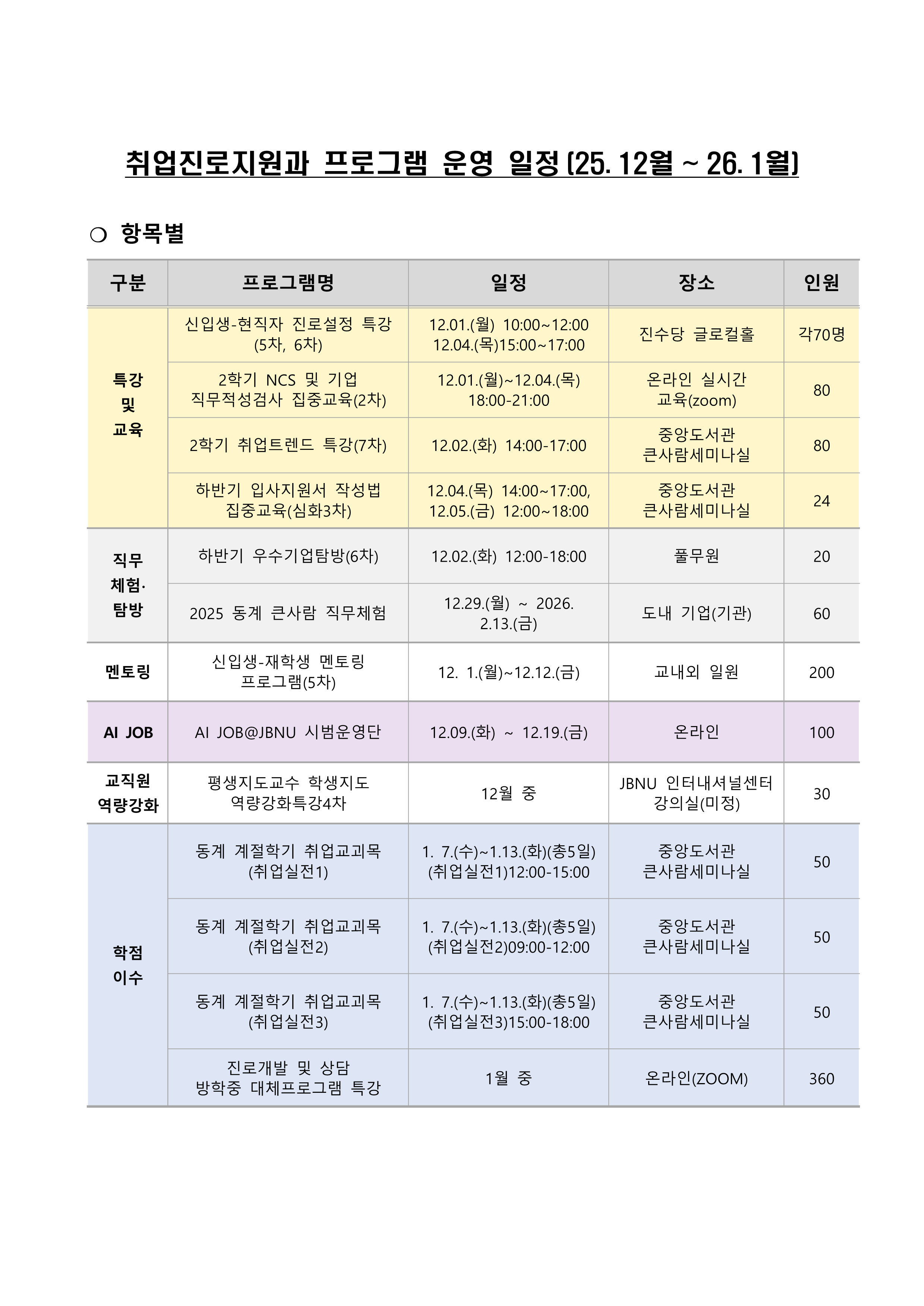 2025-2학기/12월~'26.1월] 취업진로지원과 주요 프로그램 안내