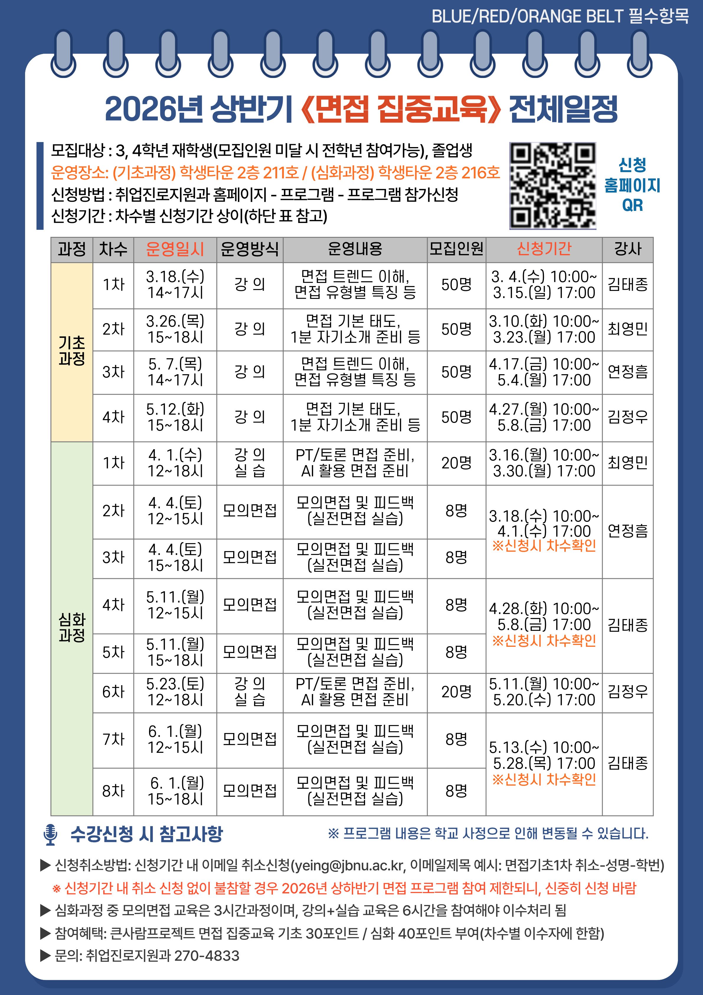 2026-1학기 입사지원서 및 면접 집중교육 프로그램 안내