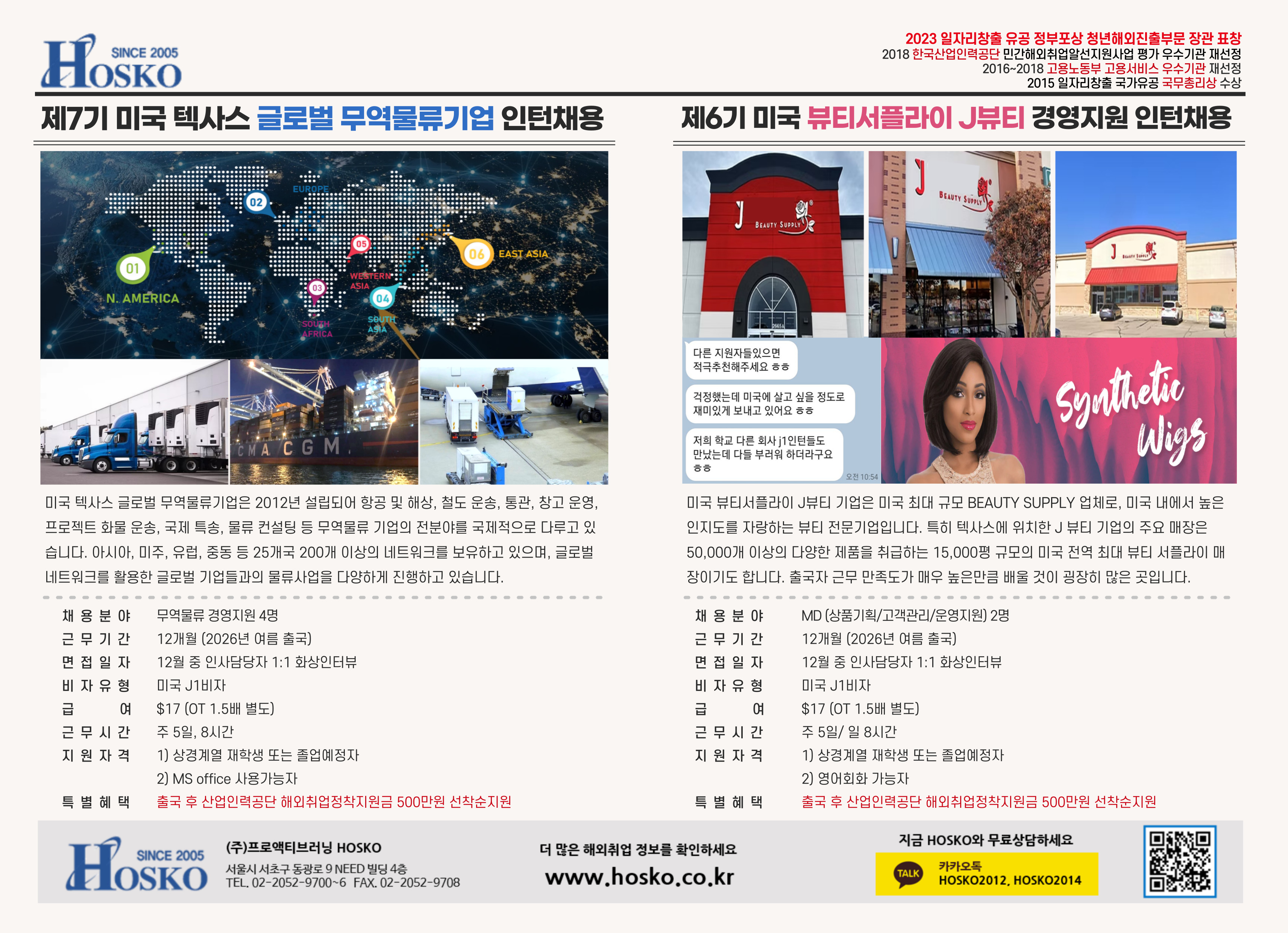 [HOSKO] 미국 무역물류기업 및 뷰티서플라이 J뷰티 경영지원 인턴채용 안내